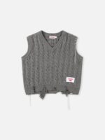 LABEL CABLE KNITTED VEST in GREY