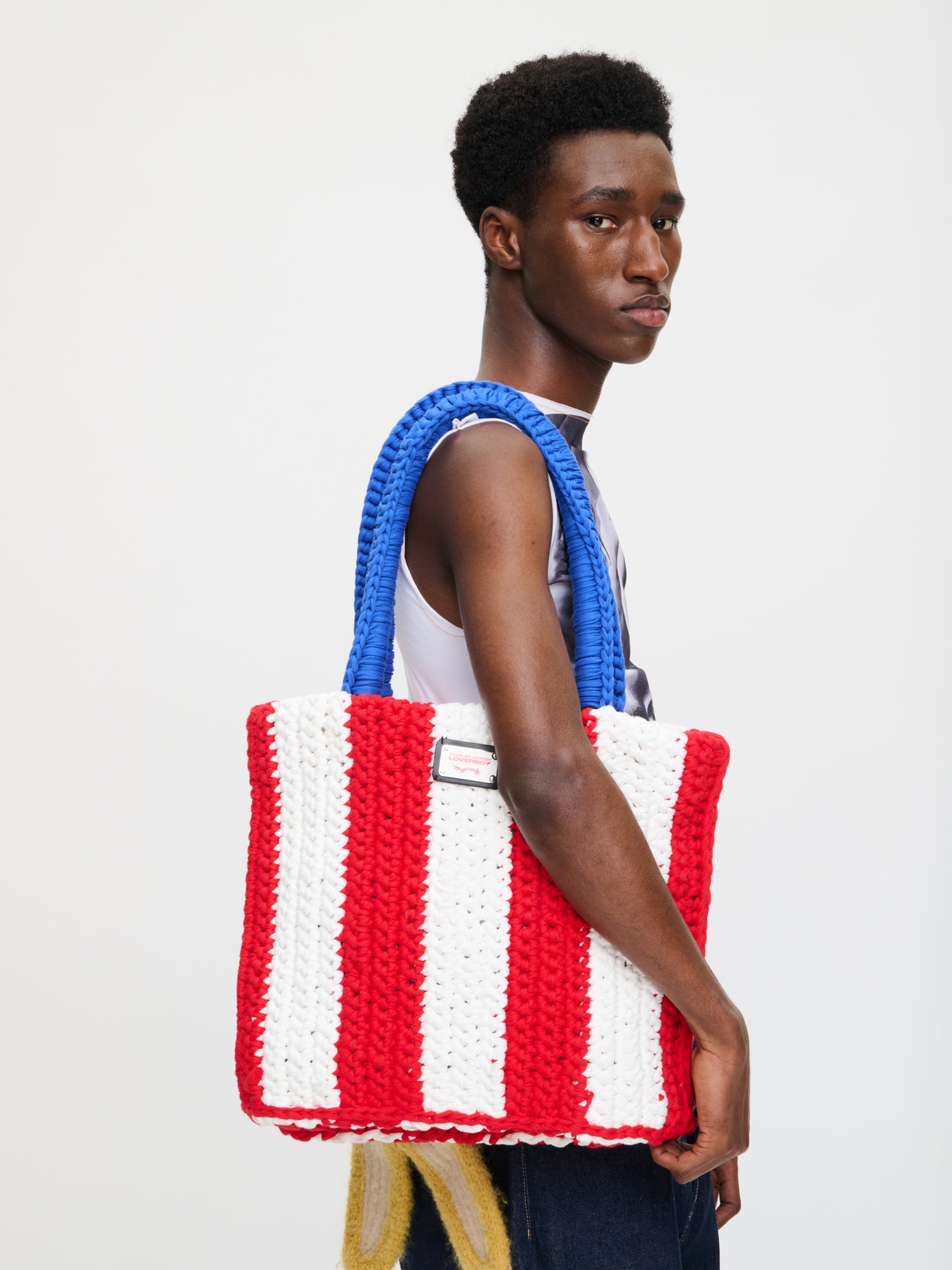 Our Mega Bucket Bag is the perfect throw-all-your-possessions-in tote, but it still has that LOVERBOY edge. An homage to our signature chunky knitwear, it is crocheted from pure cotton and slings comfortably over your shoulder.