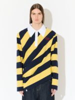 Have you ever thought that the stripes of a classic rugby shirt were just too straight? Revisiting an iconic LOVERBOY design trope of ¡°drunk tailoring¡±, the Topsy Turvy Polo blurs the lines between casual and avant-garde. Crafted entirely in organic cotton, it is complete with an oversized collar and embroidered LOVERBOY logo.